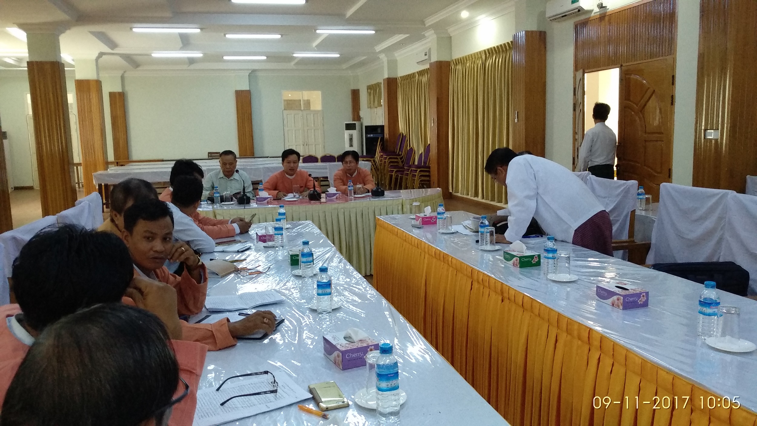(၈.၁၁.၂၀၁၇)ရက်နေ့၊ နံနက်(၁၀း၀၀)နာရီအချိန်၊ မွန်ပြည်နယ်လွှတ်တော်ရုံး၊ ဆွေးနွေးပွဲခန်းမ၌ မွန်ပြည်နယ်လွှတ်တော်ဘဏ္ဍာရေး၊ စီမံကိန်းနှင့်စီးပွားရေး ဆိုင်ရာ ကိစ္စရပ်များ လေ့လာသုံးသပ်ရေးကော်မတီမှ အစည်းအဝေး...... ...