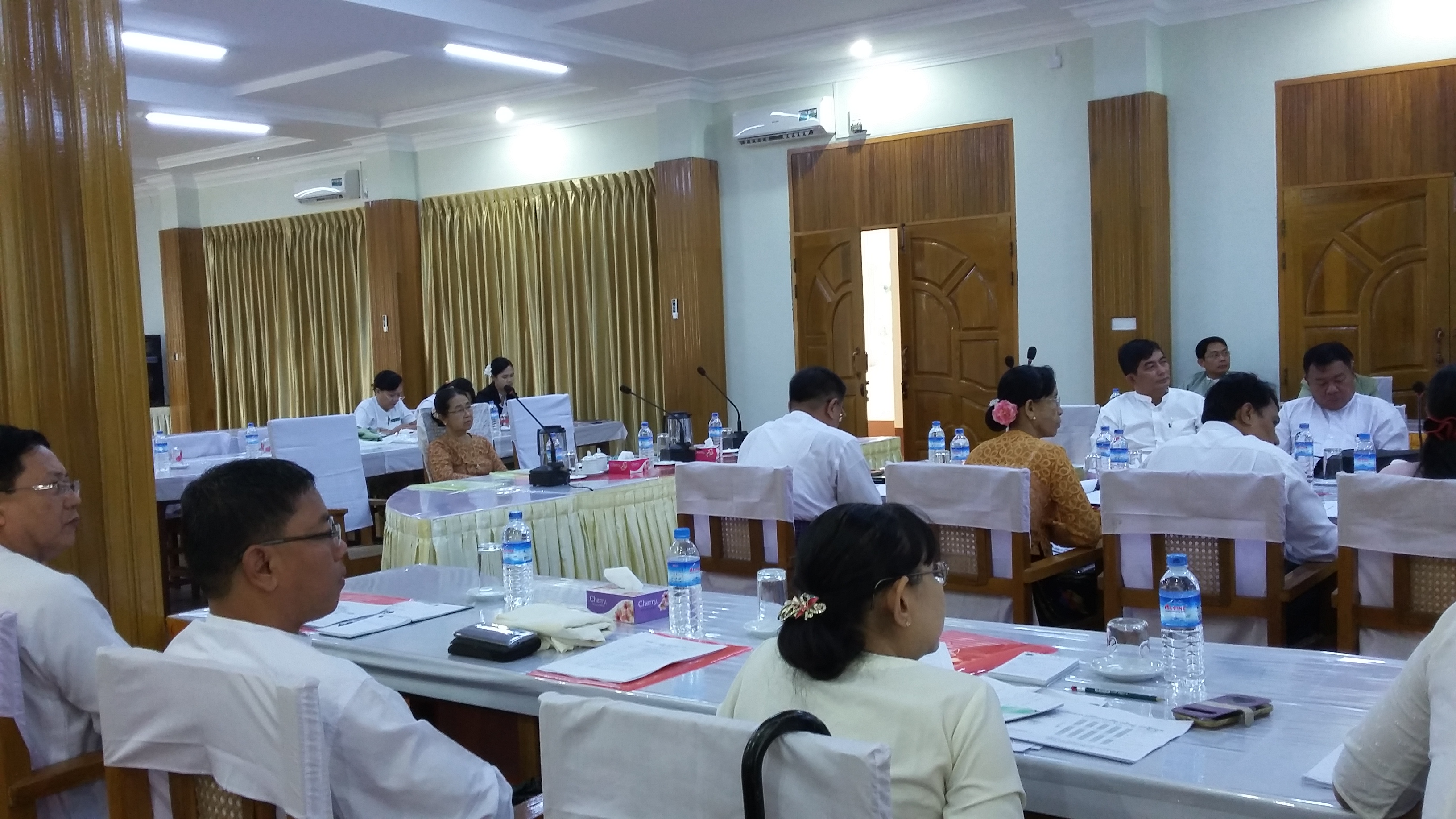 ၁၁.၈.၂၀၁၆ ရက်နေ့ ၁၀း၀၀ နာရီအချိန်တွင် မွန်ပြည်နယ်လွှတ်တော်ရုံးဆွေးနွေးပွဲခန်းမ၌ မွန်ပြည်နယ်လွှတ်တော်မှ အတည်ပြုပြဌာန်းထားသည့် မွန်ပြည်နယ်စည်ပင်သာယာရေးဥပဒေအား ပြင်ဆင်/အသစ်ရေးဆွဲရန်ကိစ္စနှင့ျ ပတ်သက်၍ အခန်းတစ်ခန်းစီအလိုက် ချပြရှင်းလင်းဆွေးနွေးပြီး ..... ...