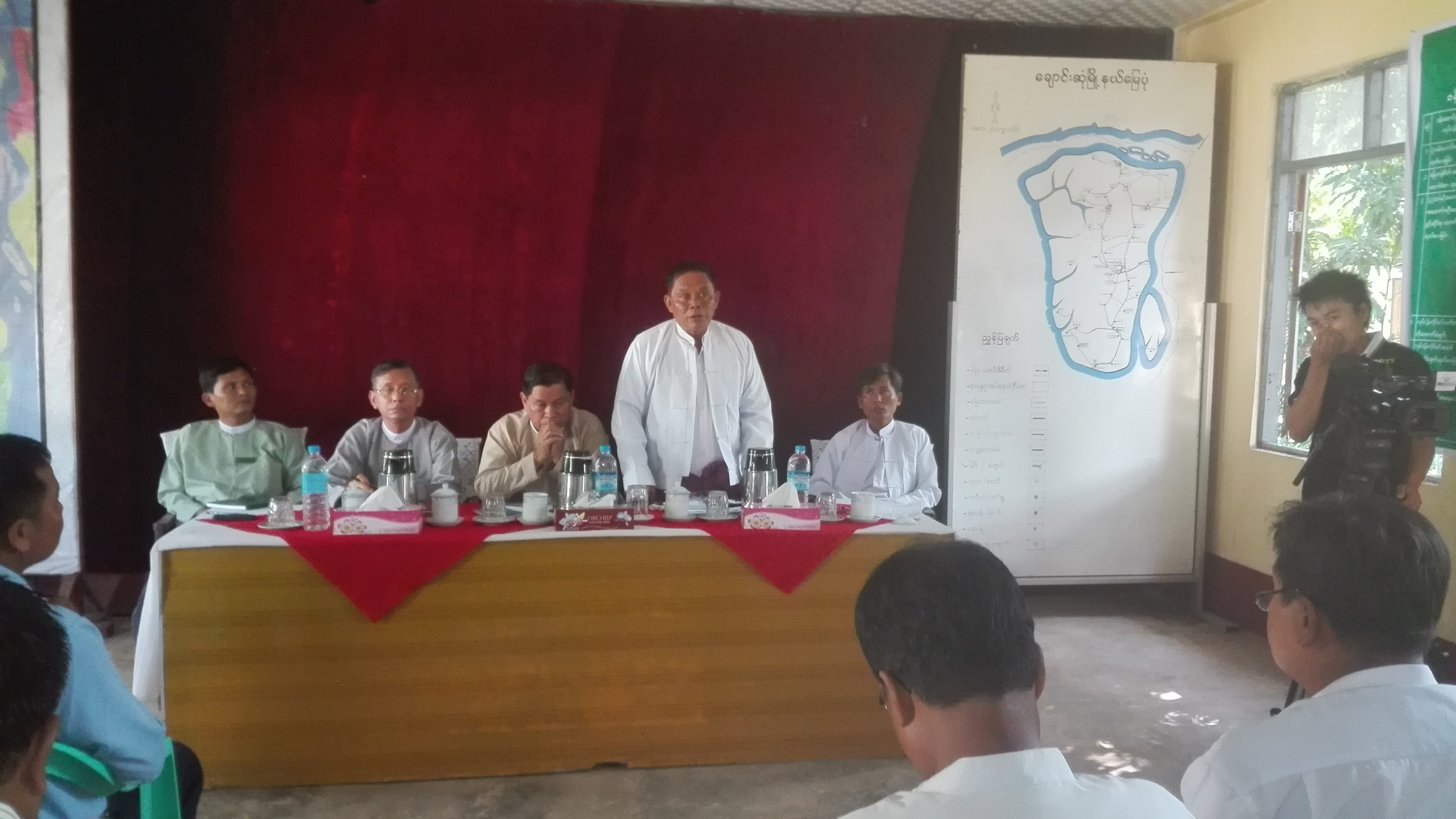 ၁၈-၁၁-၂၀၁၅ ရက်နေ့တွင် ပြည်နယ်လွှတ်တော်ဥက္ကဋ္ဌသည် ပြည်နယ်အစိုးရအဖွဲ့ လျှပ်စစ်ဝန်ကြီး၊ ပြည်နယ်ဥပဒေချုပ်၊ ပြည်နယ်လွှတ်တော်ကိုယ်စားလှယ် ဦးအောင်နိုင်ဦးတို့နှင့်အတူ ချောင်းဆုံမြို့နယ်အုပ်ချုပ်ရေးမှူး အစည်းအဝေးခန်းမတွင် ချောင်းဆုံမြို့နယ်အုပ်ချုပ်ရေးမှူးနှင့် မြို့နယ်ဌာန ဆိုင်ရာများ၊မြို့နယ်ဖွံ့ဖြိုးတိုးတက်ရေးအထောက်အကူပြုကော်မတီဝင်များ၊ စည်ပင်သာယာရေးကော်မတီ ဥက္ကဋ္ဌများ၊ ခရိုင်မြို့နယ် အင်ဂျင်နီယာ၊ ချောင်းဆုံမြို့နယ်အတွင်း လျှပ်စစ်သွယ်တန်းရေးဆောင်ရွက်လျက်ရှိ သော ကုမ္ပဏီများ၊ လုပ်ငန်းရှင်များနှင့်တွေ့ဆုံကာ ချောင်းဆုံတစ်မြို့နယ်လုံးလျှပ်စစ်မီးလင်းရေးကိစ္စ ဆွေးနွေးကြပါသည်။ ခရိုင်လျှပ်စစ်အင်ဂျင်နီယာမှ မော်လမြိုင်မှချောင်းဆုံမြို့သို့ သံလွင်မြစ်ဖြတ် လျှပ်စစ်မီး သွယ်တန်းရေးလုပ်ငန်းအခြေအနေများကို ဆွေးနွေးပါသည်။ ၎င်းနောက် ချောင်းဆုံမြို့နယ်လျှပ်စစ် အင်ဂျင်နီယာနှင့် လျှပ်စစ်မီးသွယ်တန်းရေးလုပ်ငန်း ဆောင်ရွက်လျက်ရှိကြောင်း ကုမ္ပဏီများက မိမိတို့ လုပ်ငန်းအလိုက် ဆောင်ရွက်ပြီးစီးမှု၊ တွေ့ကြုံရသောအခြေအနေများကို ဆွေးနွေးကာ တက်ရောက်လာသူ များက လိုအပ်သည်များအကြံပြုညှိနှိုင်းဆွေးနွေးပါသည်။