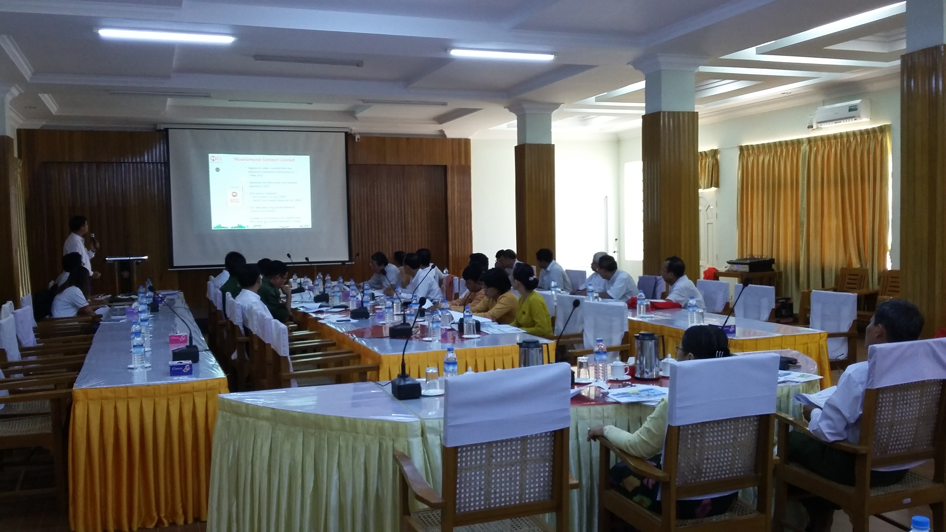 ကျိုက်မရောမြို့နယ်အတွင်းဘိလပ်မြေစက်ရုံတည်ဆောက်နေသော MCL ကုမ္ပဏီနှင့်လွှတ်တော် ကိုယ်စားလှယ် များ၊ သဘာဝပတ်ဝန်းကျင်ထိန်းသိမ်းကာကွယ်စောင့်ကြည့်ရေးကော်မတီဝင်များ တွေ့ဆုံဆွေးနွေးပွဲကို (၆-၅-၂၀၁၆) ရက်နေ့၊ (၁၀း၀၀)နာရီအချိန် မွန်ပြည်နယ်လွှတ်တော်ရုံး အစည်းအဝေးခန်းမ၌ တွေ့ဆုံပြီး သိရှိလိုသည်များ မေးမြန်း ပါသည်။ တွေ့ဆုံဆွေးနွေးပွဲသို့ စုစုပေါင်း (၄၁)ဦး တက်ရောက်ပါသည်။ တွေ့ဆုံဆွေးနွေးပွဲကို (၁၂း၀၀)နာရီအချိန် ရပ်နားပါသည်။
