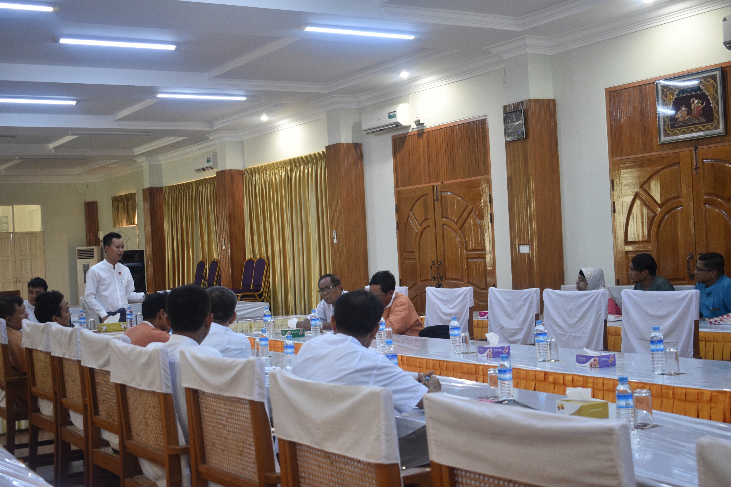 (၂၇.၆.၂၀၁၈)ရက်နေ့၊ မွန်းလွဲ(၂း၀၀)နာရီအချိန် မွန်ပြည်နယ်လွှတ်တော် ရုံးဆွေးနွေးပွဲခန်းမတွင် တိုင်ကြားစာနှင့်အသနားခံစာ၊ တင်ပြစာနှင့် အထွေထွေကိစ္စရပ်များလေ့လာသုံးသပ်ရေးကော်မတီအစည်းအဝေး ကျင်းပပြုလုပ်ခဲ့ပါသည်။ အစည်းအဝေးတွင် ကော်မတီဥက္ကဋ္ဌ၊ ကော်မတီအဖွဲ့ဝင်များ ၊ စည်ပင်သာယာရေးအဖွဲ့နှင့် ငါးလုပ်ငန်းဦးစီးဌာနမှတာဝန်ရှိသူများ၊ တိုင်ကြားထားသည့်ပုဂ္ဂိုလ်များ တက်ရောက်ကြပါသည်။