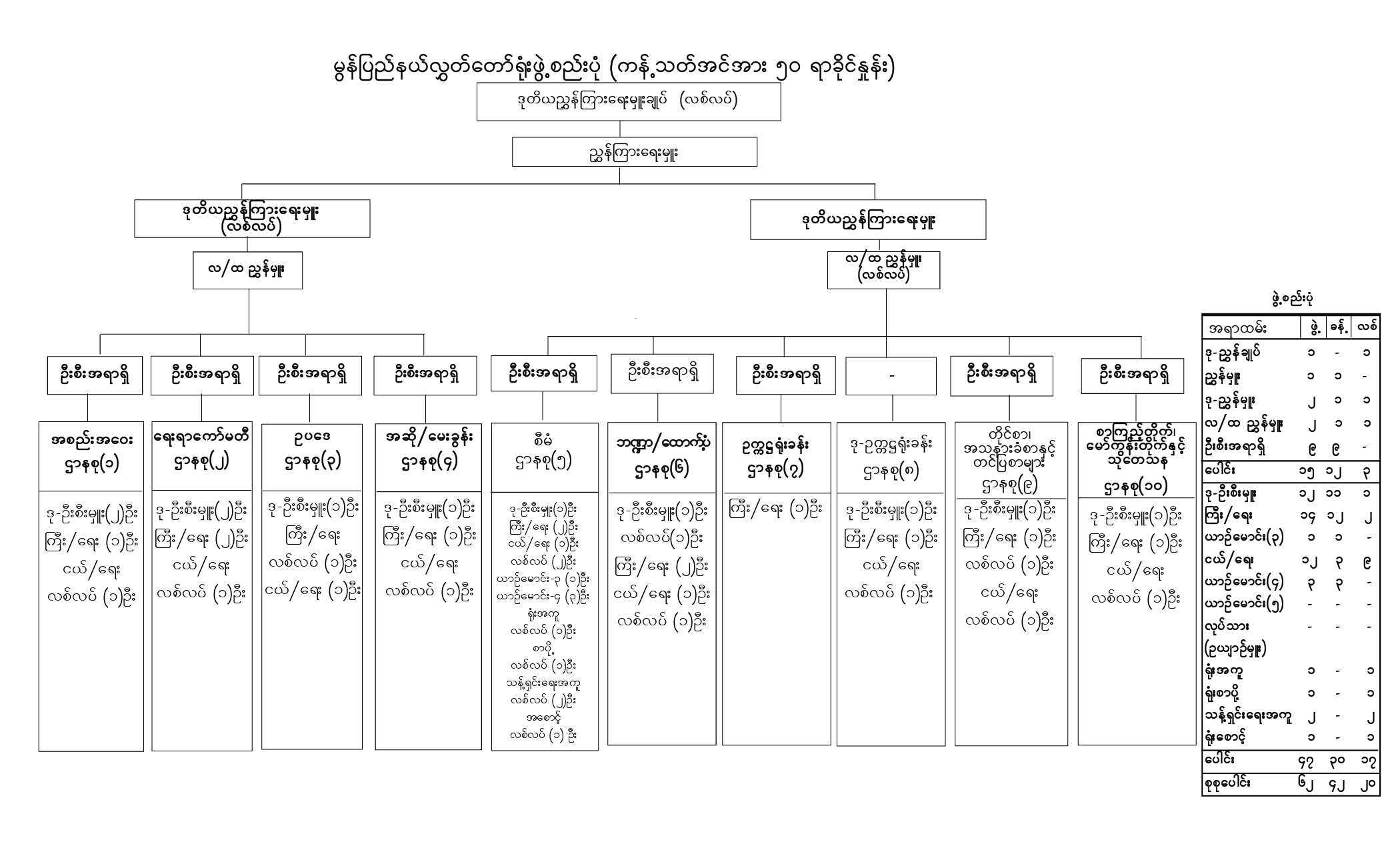 မွန်ပြည်နယ်လွှတ်တော်ရုံးအဖွဲ့ကို (၄-၇-၂၀၁၄)ရက်နေ့မတိုင်မီအထိ ဒုတိယညွှန်ကြားရေးမှူး ဦးဆောင်သည့် အရာထမ်း (၆)ဦး၊ အမှုထမ်း (၂၀)ဦး၊ စုစုပေါင်း (၂၆)ဦးပါဝင်သောအင်အားဖြင့် ဖွဲ့စည်းဆောင်ရွက်ခဲ့ပါသည်။ ယင်းကာလအတွင်း ပြည်နယ်အစိုးရအဖွဲ့ အတွင်းရေးမှူးတာဝန်ထမ်းဆောင်သူ ပြည်နယ်အထွေထွေအုပ်ချုပ်ရေးဦးစီးဌာန၊ ပြည်နယ်အုပ်ချုပ်ရေးမှူးသည် ပြည်နယ်လွှတ်တော်ရုံးအကြီးအမှူးတာဝန်ကို ပူးတွဲထမ်းဆောင်ခဲ့ပါသည်။ ( ၄ – ၇ – ၂၀၁၄ )ရက်နေ့မှစ၍ ပြည်နယ်လွှတ်တော်ရုံးအဖွဲ့ကို ညွှန်ကြားရေးမှူးဦးဆောင်သော အရာထမ်း (၆)ဦး၊ အမှုထမ်း (၃၆)ဦး၊ စုစုပေါင်း (၄၂)ဦး ရုံးအဖွဲ့ဖြင့် သီးခြားစီခွဲထွက်ဖွဲ့စည်းဆောင်ရွက်ခဲ့ပါသည်။ လက်ရှိတွင် မွန်ပြည်လွှတ်တော်ရုံးအဖွဲ့ကို ညွှန်ကြားရေးမှူးဦးဆောင်သော အရာထမ်း (၁၂)ဦး၊ အမှုထမ်း (၃၀)ဦး၊ စုစုပေါင်း (၄၂)ဦးဖြင့် မွန်ပြည်နယ်လွှတ်တော်လုပ်ငန်းများကို ဆောင်ရွက်လျက်ရှိပါသည်။