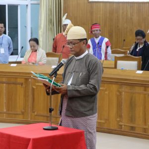 (က) ပြည်နယ်လျှပ်စစ်၊ စွမ်းအင်နှင့်စက်မှုဝန်ကြီးဌာန ဝန်ကြီးအဖြစ် ပြည်နယ်လွှတ်တော်၏ သဘော တူညီချက်ရယူပြီးဖြစ်သော ဦးလှထွန်းမှ ပြည်နယ်လွှတ်တော်ဥက္ကဋ္ဌ၏ရှေ့မှောက်တွင် ကတိ သစ္စာပြုခြင်းနှင့် ကတိသစ္စာပြုလွှာပေါ်တွင် လက်မှတ်ရေးထိုးခြင်း၊