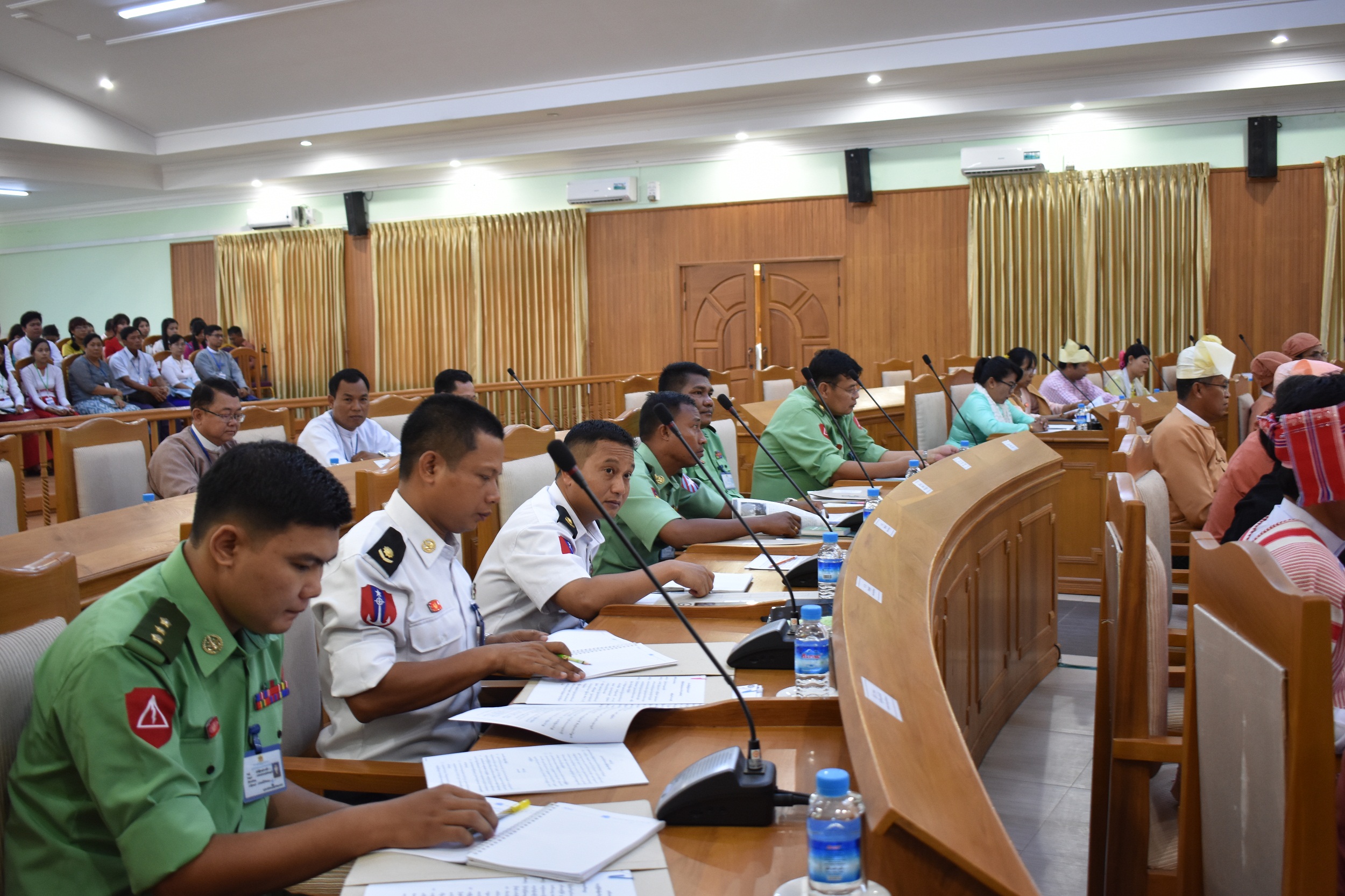 (၃) ဒေါ်ခိုင်ခိုင်လဲ့၊ ပြည်နယ်လွှတ်တော်ကိုယ်စားလှယ်၊ သထုံမြို့နယ်၊ မဲဆန္ဒနယ်အမှတ် (၁)မှ မေးမြန်းသော သဘာဝဘေးအန္တရာယ်တားဆီးကာကွယ်ရေးအတွက် Shelter Home များတည်ဆောက်သည့်ကိစ္စနှင့်ပတ်သက်၍ သိရှိလိုသောမေးခွန်းနှင့်စပ်လျဉ်း၍ လူမှုရေး ဝန်ကြီး ဒေါက်တာထိန်လင်း ကပြည်သူများ သဘာဝဘေးအန္တရာယ်များနှင့်ရင်ဆိုင်ကြုံတွေ့ လာပါက လုံခြုံစိတ်ချရသောနေရာသို့ ပြောင်းရွှေ့နေထိုင်နိုင်ရန်အတွက် Shelter Home များကို ဘီးလင်းမြို့နယ်တွင် လူ(၅၀၀)ဆံ့ (၂)လုံးနှင့် ချောင်းဆုံမြို့နယ်တွင် (၃)လုံးတည် ဆောက်ရန်လျာထားစီမံဆောင်ရွက်လျက်ရှိပါကြောင်း၊ အဆိုပါ Shelter Home များ တည်ဆောက်ရာတွင် သဘာဝဘေးအန္တရာယ်ဆိုင်ရာ စီမံခန့်ခွဲမှုဥပဒေပုဒ်မ ၁၃၊ ပုဒ်မခွဲ(ခ) နှင့် သဘာဝဘေးအန္တရာယ်ဆိုင်ရာစီမံခန့်ခွဲမှုနည်းဥပဒေများ၊ နည်းဥပဒေ ၂၄၊ နည်ဥပဒေခွဲ (ခ)တို့ပါ ထိလွယ်ရှလွယ်သောအုပ်စုအတွက် အဆင်ပြေချောမွေ့စွာသွားလာမှုလွယ်ကူစေ ရန် ဆင်ခြေလျောများထည့်သွင်းတည်ဆောက်နိုင်ရေးအတွက် တင်ဒါအောင်ကုမ္ပဏီများ အား ညှိနှိုင်းဆောင်ရွက်ပေးသွားမည်ဖြစ်ပါကြောင်းနှင့် ပြည်နယ်အတွင်း သဘာဝဘေး အန္တရာယ်တွေ့ကြုံလာရင်သော်လည်းကောင်း၊ ဇာတ်တိုက်လေ့ကျင့်ခန်းများပြုလုပ်ရာတွင် လည်းကောင်း၊ ထိခိုက်လွယ်သောအုပ်စုဖြစ်သည့် ကလေးသူငယ်များ၊ သက်ကြီးရွယ်အို များ၊ မသန်စွမ်းသူများနှင့်အမျိုးသမီးများအား ဦးစားပေးကူညီစောင့်ရှောက်မှုများထည့်သွင်း ဆောင်ရွက်ပေးသွားမည်ဖြစ်ကြောင်းဖြေကြားပါသည်။ ဆက်စပ်မေးခွန်းအနေဖြင့် ထိလွယ်ရှလွယ်သော Group ကြီးတစ်ခုလုံးအတွက် Structure ပိုင်း၊ အဆောက်အဦပုံစံ ပိုင်းကို တတ်နိုင်လို့ရှိရင် တင်ဒါအောင်ကုမ္ပဏီတစ်ခုတည်းအတွက်မဟုတ်ဘဲ ပုံစံစထုတ် ကတည်းက ဒီလိုအမျိုးအစားအတွက် တကယ့်ကိုကောင်းမွန်တဲ့ရည်ရွယ်ချက်တွေနဲ့ ဆောင်ရွက်ဖို့အစီအစဉ်ရှိ၊ မရှိ၊ တင်ဒါအောင်ကုမ္ပဏီနှင့်ညှိနိှုင်းတာမျိုးမဟုတ်ဘဲ ပုံသဏ္ဍာန် စင်္ပြီးထုတ်ကတည်းက သက်ဆိုင်ရာဝန်ကြီးဌာနအနေနဲ့ ဆောင်ရွက်ပေးဖို့အစီအစဉ်ရှိ၊ မရှိ မေးမြန်းရာ ကိုယ်စားလှယ်တော်ကြီးတင်ပြတဲ့အတိုင်း တင်ဒါအောင်ကုမ္ပဏီနှင့်မညှိနှိုင်းခင် ပုံစံရေးဆွဲသည့်အခါ ထိခိုက်လွယ်သောမျကိမမြင်အုပ်စုနှင့်နားမကြားသည့်အုပ်စုအတွက် ထည့်သွင်းဆောင်ရွက်သွားမည်ဆိုတဲ့အကြောင်း ပြန်လည်ဖြေကြားပါသည်။