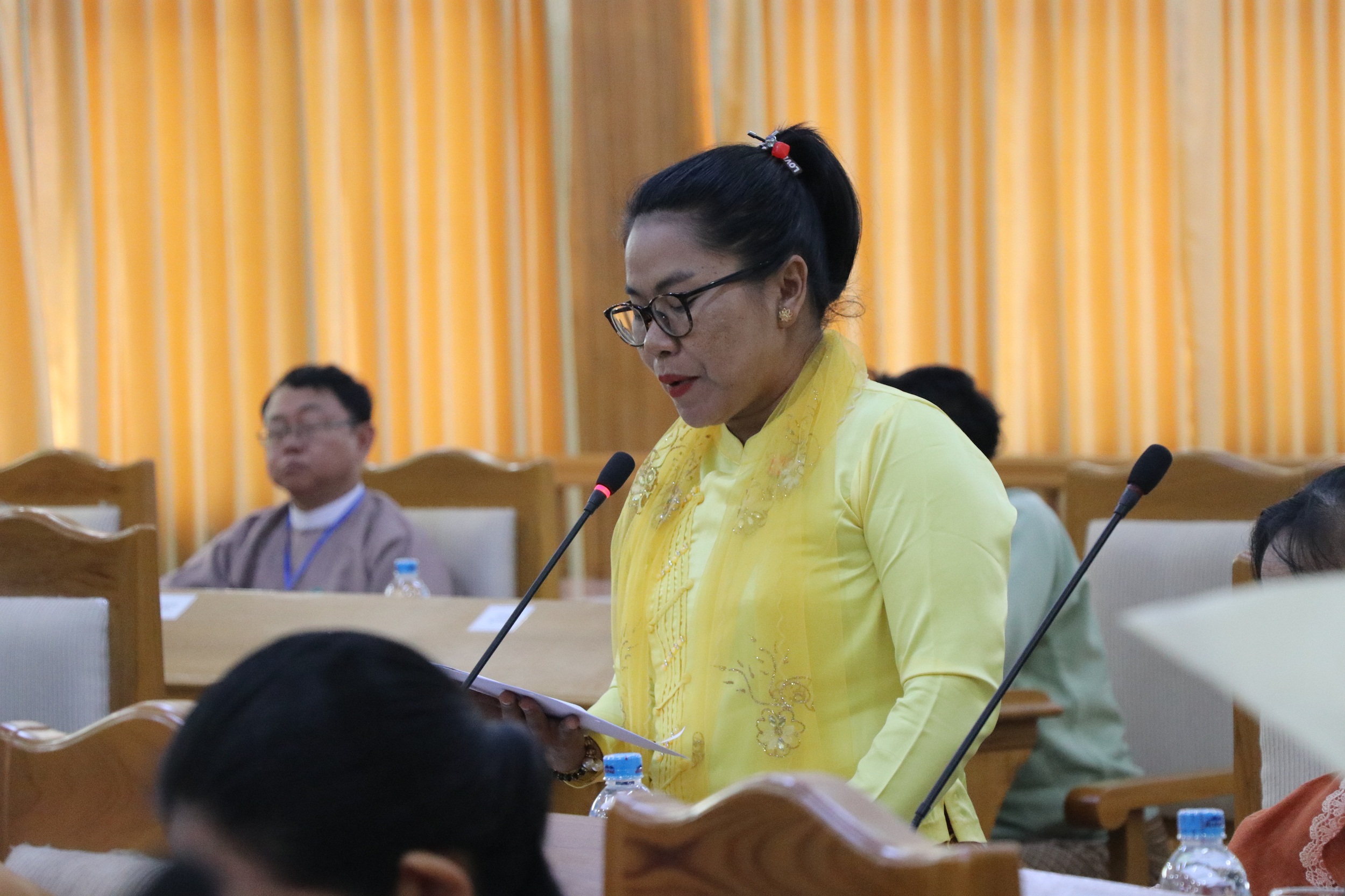 (ခ) ဒေါ်မြသိင်္ဂ ီမော်၊ ပြည်နယ်လွှတ်တော်ကိုယ်စားလှယ်၊ မုဒုံံမြို့နယ် မဲဆန္ဒနယ်အမှတ်(၁) ၏ “မုဒုံမြို့နယ်၊ ကျောက်တစ်လုံး၊ မှန်ဂနိမ်း၊ နိုင်းပြိုင်ကျေးရွာ (၃)ရွာကြား၌ တည်ဆောက်ထားသော ပင်လယ်ပြာစွမ်းအား၊ ဝဥစက်ရုံအား မြေယာပိုင်ဆိုင်မှုအပ်အဝင် ခွင့်ပြုချက်များ၊ ဥပဒေ၊ နည်းဥပဒေ၊ လုပ်ထုံးလုပ်နည်းများနှင့်အညီ ဆောင်ရွက်ရန်နှင့်ဖော်ပြပါအတိုင်းမဆောင်နိုင်မီစပ်ကြား စက်ရုံအား ပိတ်သိမ်းထား ပေးရန်တိုက်တွန်းကြောင်း အဆို ” နှင့်စပ်လျဉ်း၍ အမည်စာရင်း တင်သွင်းထားသော ဒေါက်တာမင်းစိုးလင်း၊ ပြည်နယ်လွှတ်တော်ကိုယ်စားလှယ်၊ ရေးမြို့နယ် မဲဆန္ဒနယ်အမှတ် (၁)၊ ဒေါ်ကြည်ကြည်မြ၊ ပြည်နယ်လွှတ်တော်ကိုယ်စားလှယ်၊ ချောင်းဆုံမြို့နယ်မဲဆန္ဒနယ် အမှတ် (၂)၊ ဦးထွန်းမင်းအောင်၊ ပြည်နယ်လွှတ်တော်ကိုယ်စားလှယ်၊ ပေါင်မြို့နယ် မဲဆန္ဒနယ်အမှတ် (၁)၊ ထောက်ခံဆွေးနွေးခြင်းနှင့် စီမံကိန်း၊ ဘဏ္ဍာရေး၊ လူဝင်မှုကြီးကြပ်ရေးနှင့် ပြည်သူ့အင်အားဝန်ကြီး ဦးဝဏ္ဏကျော်မှ ပြန်လည်ရှင်းလင်းဆွေးနွေးခြင်း၊ အဆိုရှင် ဒေါ်မြသိင်္ဂီမော် ၊ ပြည်နယ် လွှတ်တော်ကိုယ်စားလှယ်၊ မုဒုံမြို့နယ် မဲဆန္ဒနယ်အမှတ် (၁)မှ ပြန်လည်ဆွေးနွေးခဲ့ပါသည်။