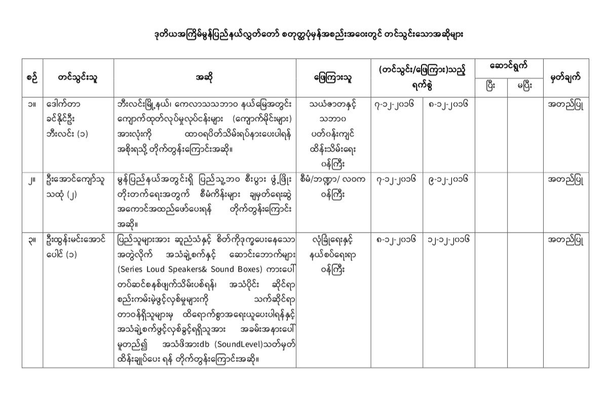 ဒုတိယအကြိမ်မွန်ပြည်နယ်လွှတ်တော် စတုတ္ထပုံမှန်အစည်းအဝေးတွင် အဆို(၄)ခု တင်သွင်းခဲ့ပါသည်။