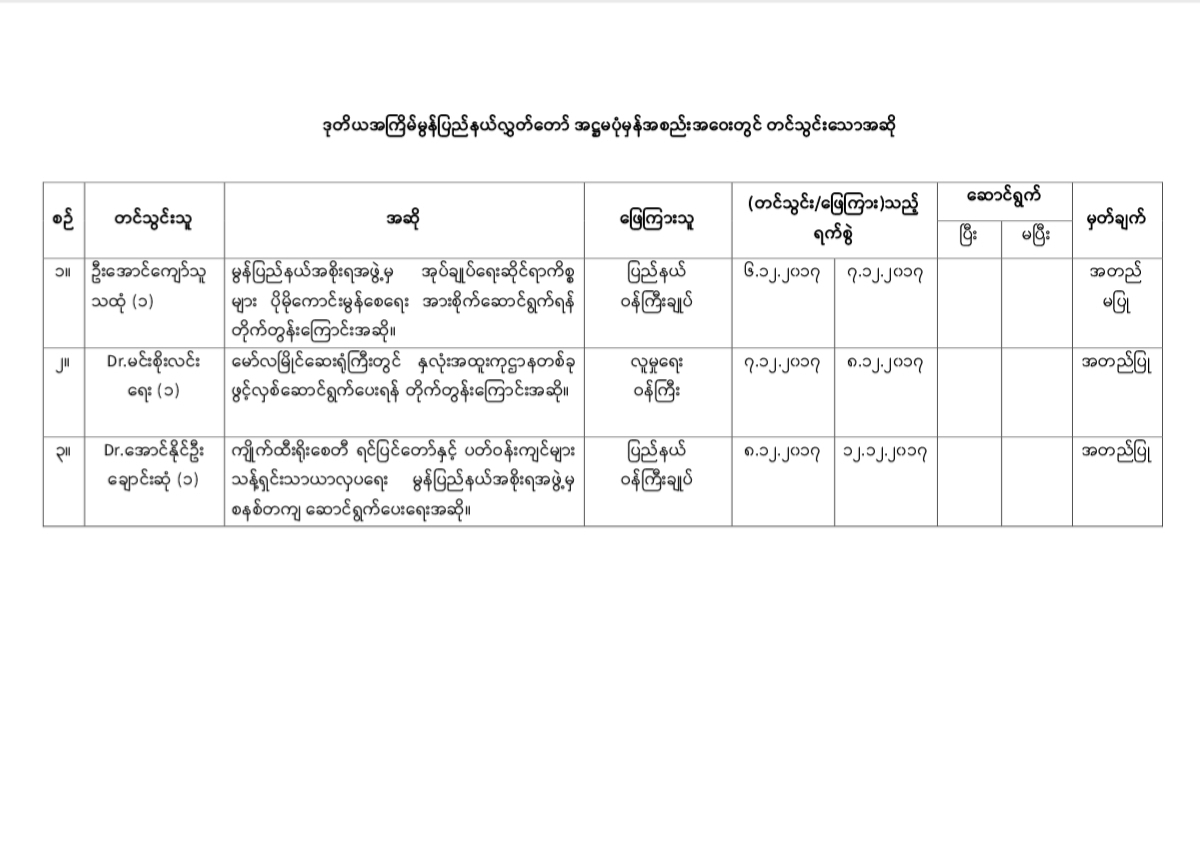 ဒုတိယအကြိမ်မွန်ပြည်နယ်လွှတ်တော် အဋ္ဌမပုံမှန်အစည်းအဝေးတွင် အဆို(၃)ခု တင်သွင်းခဲ့ပါသည်။