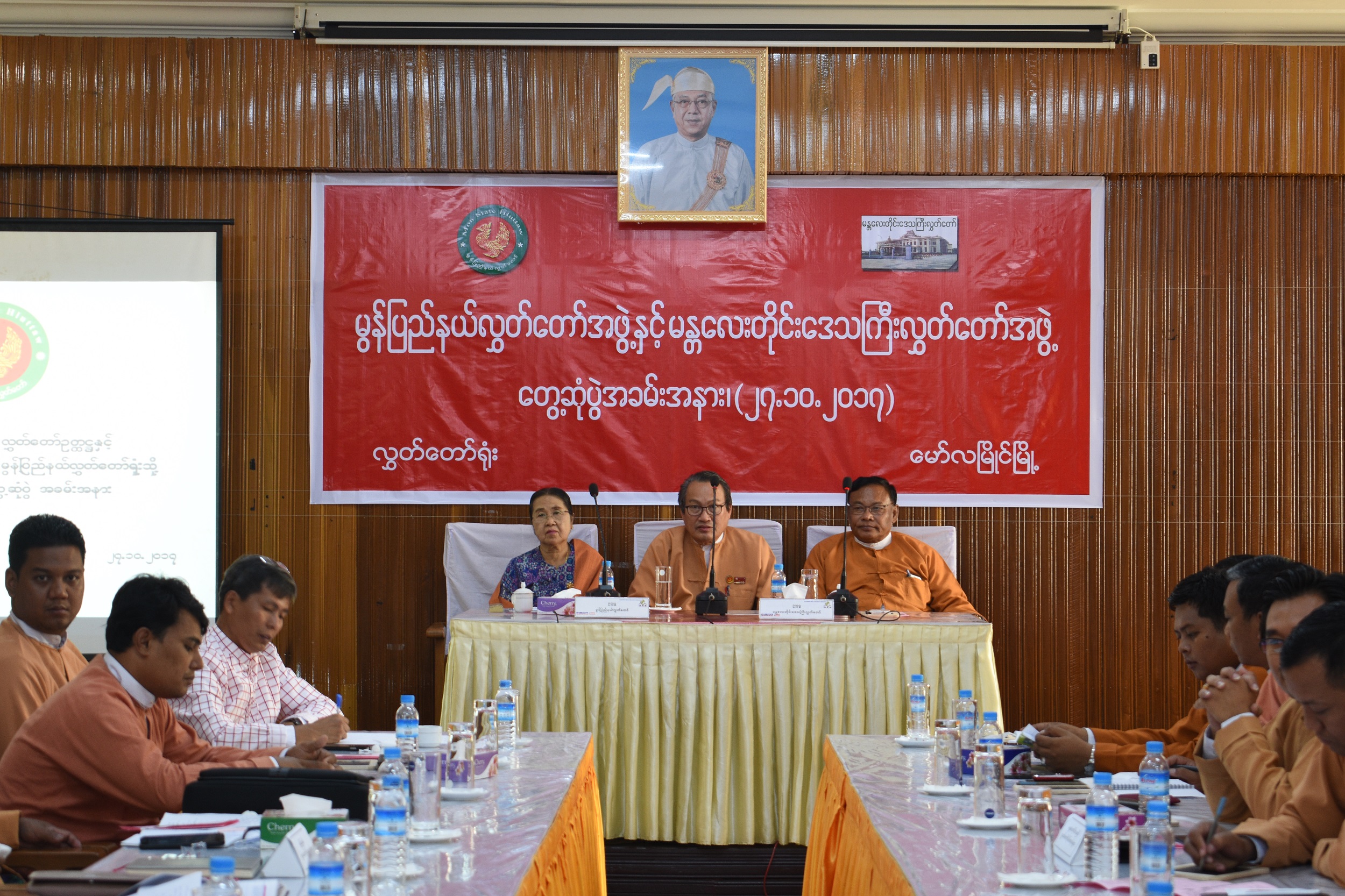 (၂၇.၁၀.၂၀၁၇)ရက်နေ့၊ နံနက်(၉း၀၀)နာရီအချိန်၊ မွန်ပြည်နယ်လွှတ်တော်ရုံး၊ ဆွေးနွေးပွဲခန်းမ၌ မန္တလေးတိုင်းဒေသကြီးလွှတ်တော်ဥက္ကဋ္ဌ၊ ဒုတိယဥက္ကဋ္ဌ၊ တိုင်းဒေသကြီးလွှတ်တော်ကိုယ်စားလှယ်များနှင့် မန္တလေးတိုင်းဒေသကြီးလွှတ်တော်ရုံး ဝန်ထမ်းများမှ မွန်ပြည်နယ်လွှတ်တော်သို့ လာရောက်လည်ပတ် လေ့လာခဲ့ကြပါသည်။