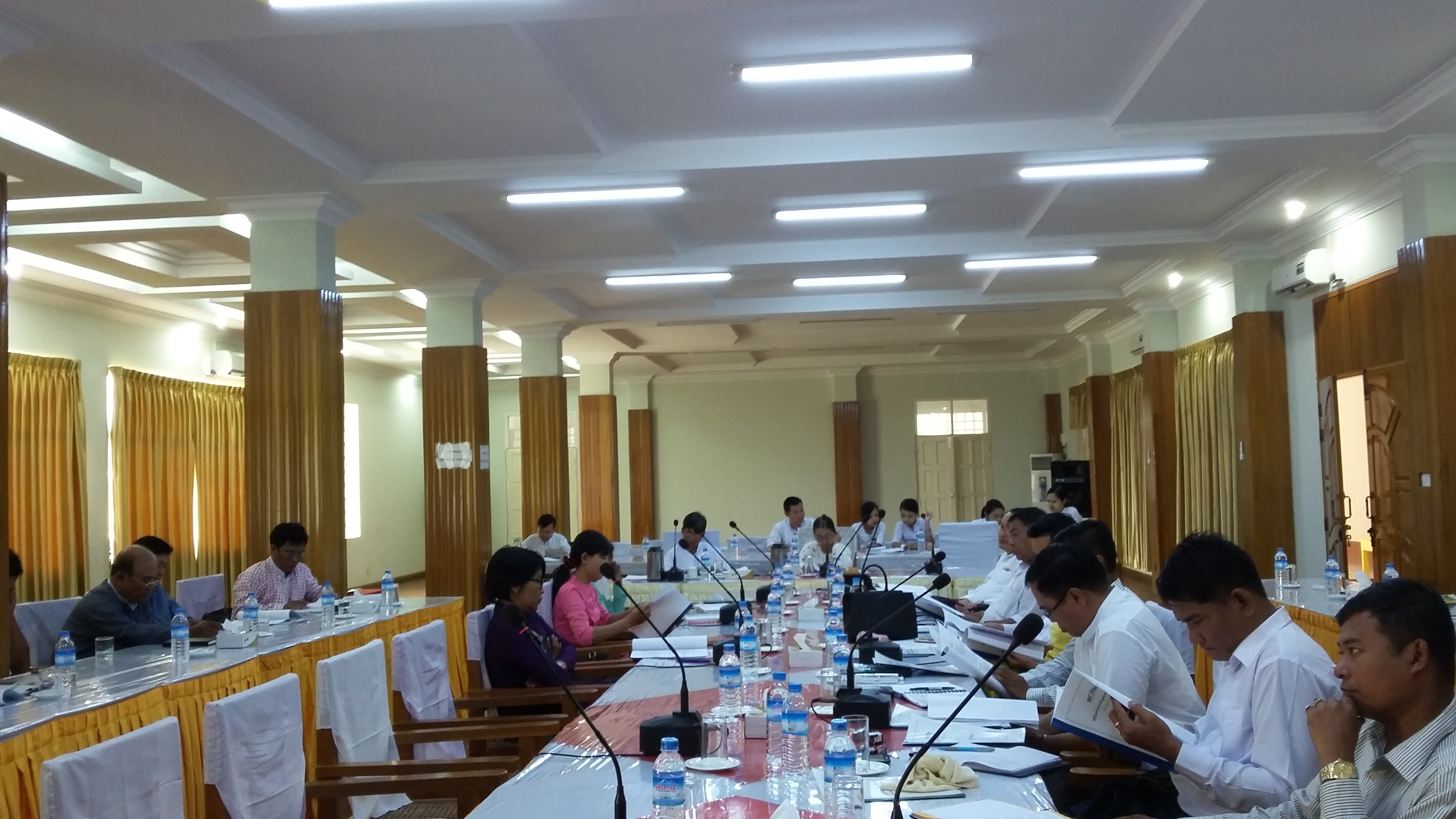 ၁၁.၈.၂၀၁၆ ရက်နေ့ ၁၀း၀၀ နာရီအချိန်တွင် မွန်ပြည်နယ်လွှတ်တော်ရုံးဆွေးနွေးပွဲခန်းမ၌ မွန်ပြည်နယ်လွှတ်တော်မှ အတည်ပြုပြဌာန်းထားသည့် မွန်ပြည်နယ်စည်ပင်သာယာရေးဥပဒေအား ပြင်ဆင်/အသစ်ရေးဆွဲရန်ကိစ္စနှင့ျ ပတ်သက်၍ အခန်းတစ်ခန်းစီအလိုက် ချပြရှင်းလင်းဆွေးနွေးပြီး ..... ...