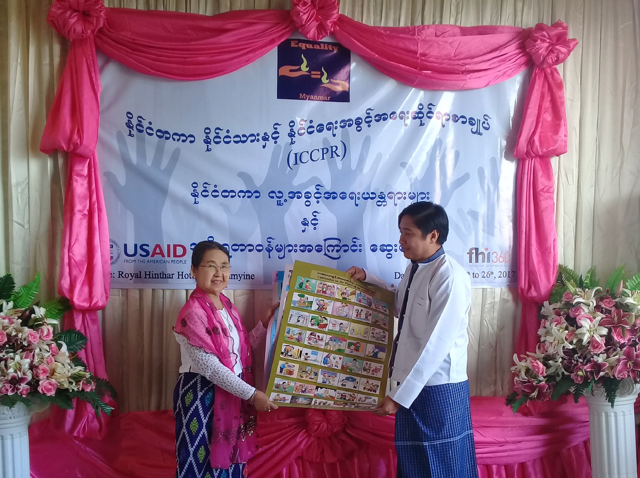 ညီမျှခြင်းမြန်မာမှ ကြီးမှူးကျင်းပတဲ့ နိုင်ငံတကာ နိုင်ငံသားနှင့် နိုင်ငံရေးအခွင့်အရေးဆိုင်ရာ သဘောတူစာချုပ် အပါ အဝင် နိုင်ငံတကာ လူ့အခွင့်အရေး ယန္တရားများနှင့် အစိုးရတာဝန်များအကြောင်းဆွေးနွေးပွဲကို (၂၅.၉.၂၀၁၇)မှ (၂၆.၉.၂၀၁၇) ရက်နေ့ထိ နံနက် (၉း၀၀) နာရီအချိန်တွင် မော်လမြိုင်မြို့ Royal Hinthar Hotel ၌ ကျင်းပပြုလုပ် ခဲ့ပါသည်။