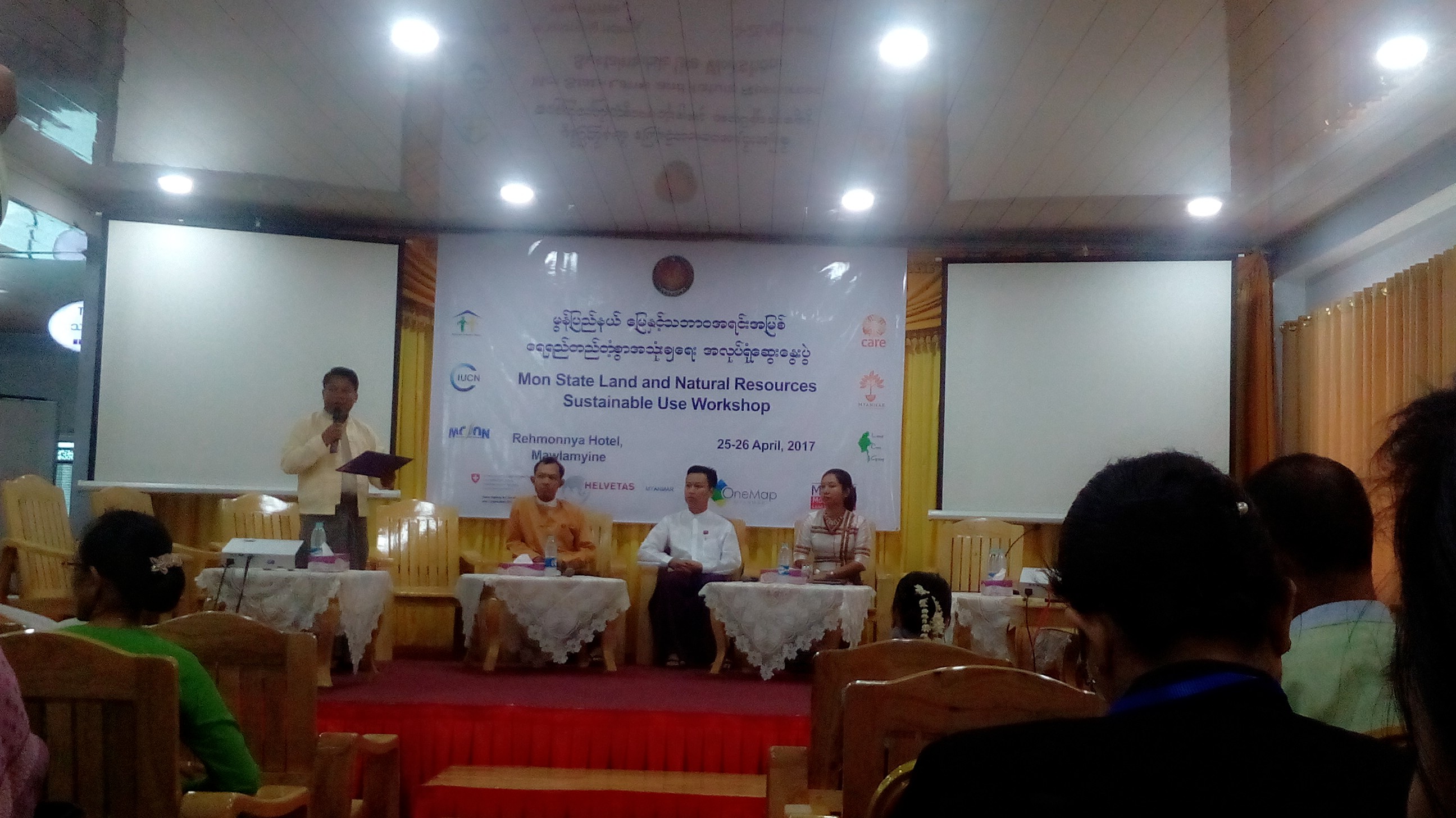 (၂၅.၄.၂၀၁၇)ရက်နေ့မှ (၂၆.၄.၂၀၁၇)ရက်နေ့အထိ နံနက်(၀၈း၃၀)နာရီအချိန် မော်လမြိုင်မြို့ရာမညဟိုတယ်၌ မွန်ပြည်နယ်အစိုးရအဖွဲ့၏ ဦးဆောင်မှုနှင့်မွန်ပြည်နယ်အရပ်ဖက်အဖွဲ့အစည်းကွန်ရက်၊ မွန်ဒေသမြေအသုံးချမှုကွန်ရက်၊ Helvetas Myanmar, Network Action Group (NAG), IUCM, CARE Myanmar (GRO Project), Centre for Development and Enviroment (CDE) of the University of Bern နှင့် Land Core Group (LCG) တို့၏ ပူးပေါင်းဆောင်ရွက်မှုုဖြင့် ကျင်းပပြုလုပ်သော မွန်ပြည်နယ်အတွင်းရှိ မြေနှင့်သဘာဝအရင်းအမြစ်ရေရှည်တည်တံ့စွာ အသုံးပြုရေးအလုပ်ရုံဆွေးနွေးပွဲသို့ မွန်ပြည်နယ်ဝန်ကြီးချုပ်နှင့်မွန်ပြည်နယ်လွှတ်တော်ဥက္ကဋ္ဌတို့မှ တက်ရောက်၍ အဖွင့်အမှာစကားပြောကြားခဲ့ပါသည်။ အဆိုပါဆွေးနွေးပွဲတွင် မွန်ပြည်နယ်မြေနှင့် သဘာဝအရင်းအမြစ် ရေရှည်တည်တံ့စွာအသုံးပြုရေး ခေါင်းစဉ်ဖြင့် မွန်ပြည်နယ်အစိုးရနှင့်ဌာနဆိုင်ရာများ တင်ပြဆွေးနွေးခြင်း၊ မွန်ပြည်နယ်လွှတ်တော်အဖွဲ့မှ တင်ပြဆွေးနွေးခြင်း၊ အရပ်ဖက်အဖွဲ့အစည်းများမှ တင်ပြဆွေးနွေးခြင်းနှင့်ဒေသခံများမှ တင်ပြဆွေးနွေးခြင်းအစီအစဉ်များဖြင့် အသေးစိတ်ဆွေးနွေးဆောင်ရွက်ခဲ့ပါသည်။