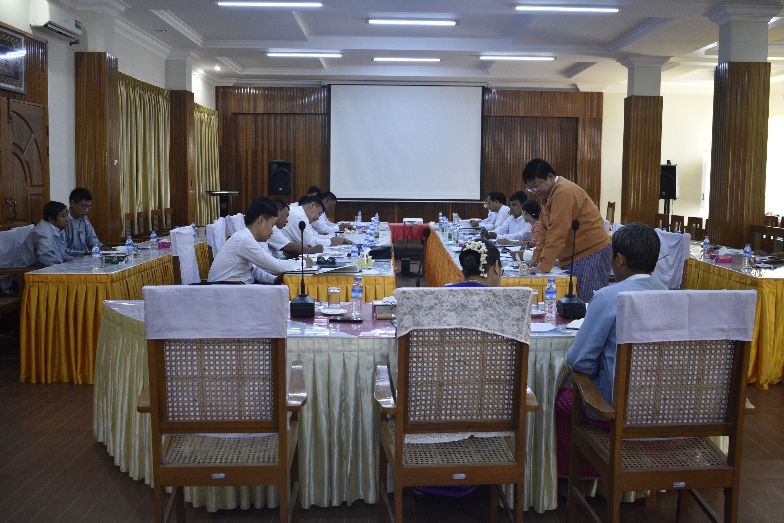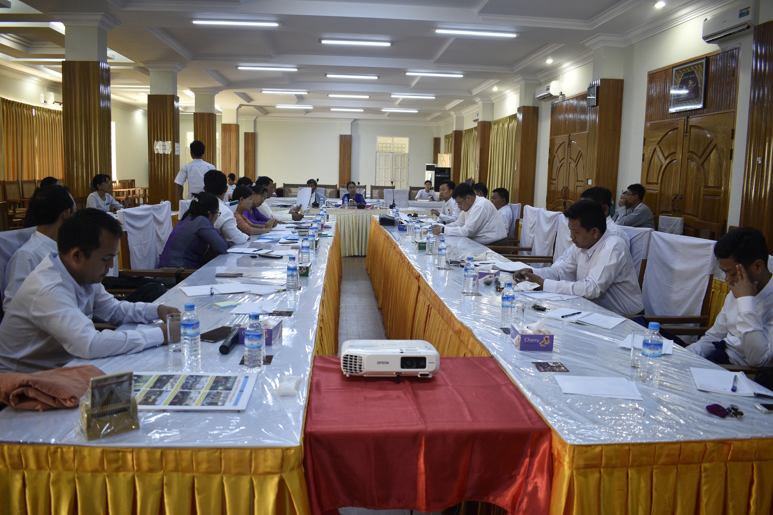 အစည်းအဝေးတွင် တက်ရောက်လာသူများမှ ၂၀၁၈ခု ဘဏ္ဍာရေးနှစ်၊ ဧပြီလမှ စက်တင်ဘာလအထိ (၆)လအတွက် မွန်ပြည်နယ်၏ ဘဏ္ဍာငွေအရအသုံးဆိုင်ရာဥပဒေကြမ်း ဆွေးနွေးခဲ့ကြပါသည်။