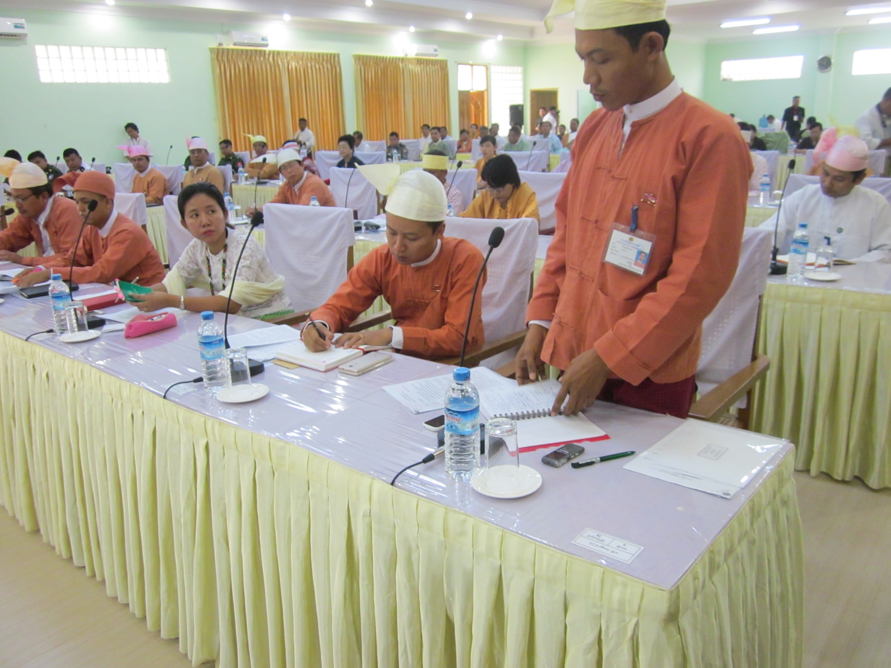ဒုတိယအကြိမ် မွန်ပြည်နယ်လွှတ်တော်ပထမပုံမှန်အစည်းအဝေး (တတိယနေ့)ကို (၂၉-၃-၂၀၁၆)ရက်နေ့၊ (၁၀း၀၀)နာရီအချိန်တွင် ပြည်နယ်လွှတ်တော်အစည်းအဝေးခန်းမ၌ ကျင်းပပြုလုပ်ပါသည်။ အစည်းအဝေးသို့ တက်ရောက်ခွင့်ရှိသည့် ပြည်နယ်လွှတ်တော်ကိုယ်စားလှယ် (၃၁)ဦးအနက် (၃၁)ဦး တက်ရောက်မှုအခြေအနေကို မှတ်တမ်းတင်ခြင်း၊ ပြည်နယ်လွှတ်တော်ကိုယ်စားလှယ်များ စိစစ်ရေးကော်မတီ၏ တာဝန်၊ လုပ်ပိုင်ခွင့်၊ ရပိုင်ခွင့်၊ သက်တမ်းသတ်မှတ်ခြင်းတို့နှင့်စပ်လျဉ်း၍ သံဖြူဇရပ်မြို့နယ်၊ မဲဆန္ဒနယ်အမှတ် (၂)မှ ပြည်နယ်လွှတ်တော် ကိုယ်စားလှယ်၊ ကော်မတီအတွင်းရေးမှူး ဦးထွန်းဌေး ဖတ်ကြားရှင်းလင်းတင်ပြခြင်း၊ ဆွေးနွေးခြင်းနှင့်ကိုယ်စားလှယ် စိစစ်ရေးကော်မတီကို ဖွဲ့စည်းကြောင်းကြေညာခြင်း၊ ပြည်နယ်ဝန်ကြီးချုပ်အဖြစ် ခန့်အပ်တာဝန်ပေးနိုင်ရန် နိုင်ငံတော် သမ္မတအဖြစ် ရွေးချယ်တင်မြှောက်ခံထားသူက ပေးပို့ထားသည့် ဘီးလင်းမြို့နယ်၊ မဲဆန္ဒနယ်အမှတ် (၂)မှ ပြည်နယ် လွှတ်တော်ကိုယ်စားလှယ်၊ ပြည်နယ်လွှတ်တော်ဒုတိယဥက္ကဋ္ဌ ဦးမင်းမင်းဦး၏ အမည်စာရင်းအား လွှတ်တော်မှ ဆွေးနွေးရန် ဖိတ်ခေါ်ခြင်း၊ လွှတ်တော်မှ သဘောတူကြောင်း ကြေညာခြင်း၊ ချောင်းဆုံမြို့နယ်၊ မဲဆန္ဒနယ်အမှတ် (၁)မှ ပြည်နယ်လွှတ်တော်ကိုယ်စားလှယ် ဒေါက်တာအောင်နိုင်ဦးက မော်လမြိုင်မြို့၊ ကမ်းနားလမ်း အဆင့်(၆) စီမံကိန်း ဆောင်ရွက်ထားရှိမှုအား ပြန်လည်စိစစ်ရန် တိုက်တွန်းကြောင်း အရေးကြီးအဆို တင်သွင်းခြင်းကို ပြည်နယ် လွှတ်တော်ကိုယ်စားလှယ်(၂)ဦး၏ ထောက်ခံ ဆွေးနွေးချက်နှင့်အတူ သဘောတူမှတ်တမ်းတင်ကြောင်းနှင့် ပြည်နယ် အစိုးရအဖွဲ့သို့ စာထုတ်အကြောင်းကြား သွားမည်ဖြစ်ကြောင်း ဆောင်ရွက်ပါသည်။ အစည်းအဝေးသို့ လေ့လာသူအဖြစ် (၁၂)ဦး တက်ရောက်ပါသည်။
