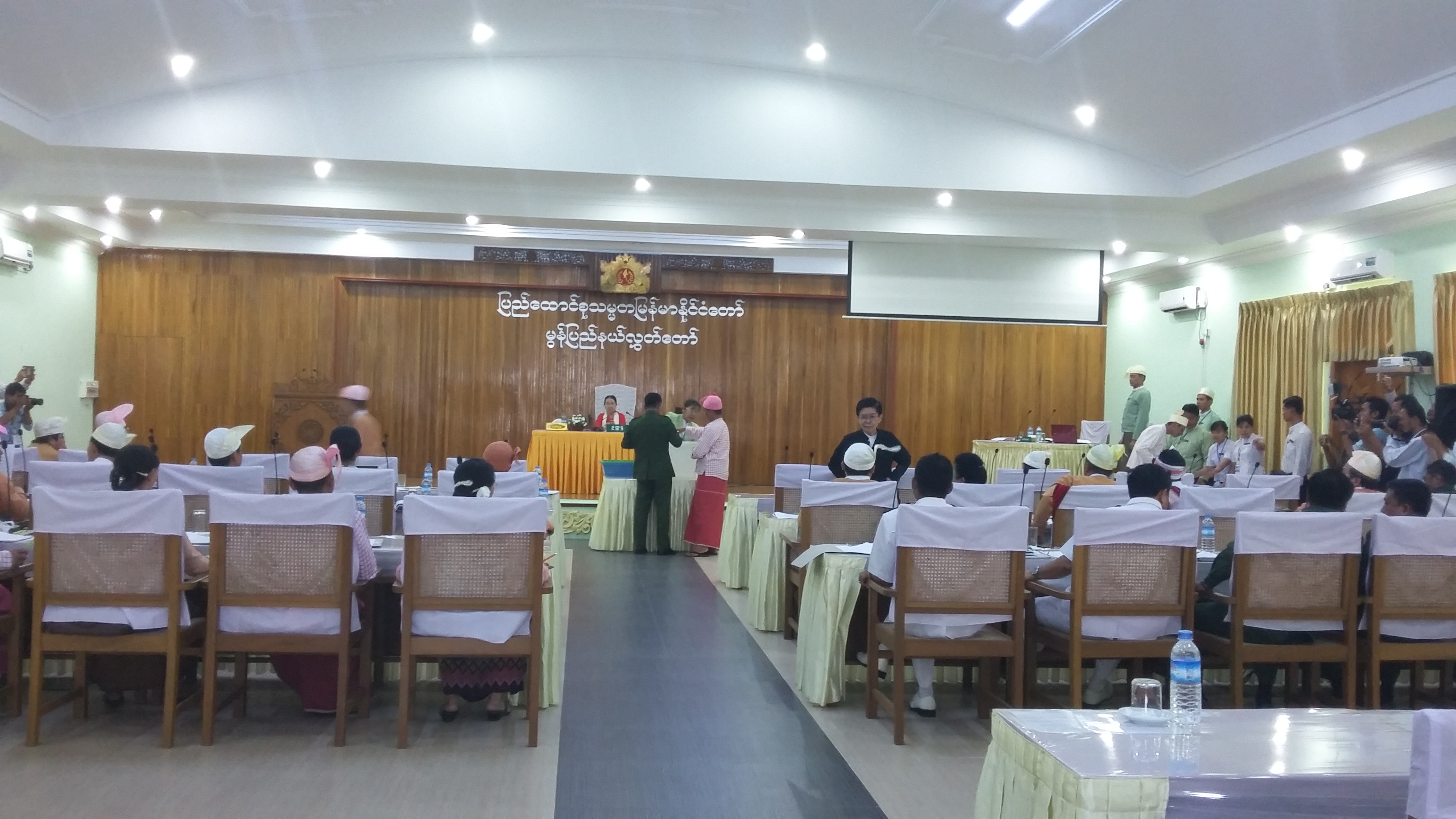 ဒုတိယအကြိမ်မွန်ပြည်နယ်လွှတ်တော် တတိယပုံမှန်အစည်းအဝေး (ဒုတိယနေ့)ကို (၄-၁၀-၂၀၁၆)ရက်နေ့၊ နံနက် (၁၀း၀၀)နာရီအချိန်တွင် မွန်ပြည်နယ်လွှတ်တော်ရုံး၊ အစည်းအဝေးခန်းမ၌ ကျင်းပပြုလုပ်ခဲ့ပါသည်။ အစည်းအဝေးသို့ တက်ရောက်ခွင့်ရှိသည့် ကိုယ်စားလှယ် (၃၁)ဦးအနက် (၃၀)ဦး တက်ရောက်မှုအခြေအနေကို မှတ်တမ်းတင်ခြင်း၊ အစည်းအဝေးတွင် မေးခွန်း (၇)ခု မေးမြန်းခြင်းနှင့်ဖြေကြားခြင်း၊ သထုံမြို့နယ်၊ မဲဆန္ဒနယ်အမှတ် (၂)၊ ပြည်နယ် လွှတ်တော်ကိုယ်စားလှယ် ဦးအောင်ကျော်သူ၏ “သထုံခရိုင်၊ သထုံမြို့နယ်တွင် မရှိမဖြစ်လိုအပ်လျက်ရှိသော အာဇာနည်ကျောက်တိုင် တည်ဆောက်ရန် မြေနေရာ ပြန်လည်ပေးပါရန် တိုက်တွန်းကြောင်းအဆို” တင်သွင်းခြင်းနှင့် အဆိုကို လွှတ်တော်တွင် လက်ခံဆွေးနွေးသင့်ကြောင်း သထုံမြို့နယ်၊ မဲဆန္ဒနယ်အမှတ် (၁)မှ ပြည်နယ်လွှတ်တော် ကိုယ်စားလှယ် ဒေါ်ခိုင်ခိုင်လဲ့မှ ထောက်ခံဆွေးနွေးခြင်း၊ ရေးုမြို့နယ်၊ မဲဆန္ဒနယ်အမှတ် (၂)မှ ပြည်နယ်လွှတ်တော် ကိုယ်စားလှယ် ဦးချစ်တင်၏ “လူ့အခွင့်အရေးဖောက်ဖျက်မှုတွေ့ရှိချက်များကို တရားဥပဒေအရ ဆောင်ရွက်ပေးရန် တိုက်တွန်းကြောင်းအဆို” တင်သွင်းခြင်းနှင့်အဆိုကို လွှတ်တော်တွင် လက်ခံဆွေးနွေးသင့်ကြောင်း ရေးမြို့နယ်၊ မဲဆန္ဒနယ်အမှတ် (၁)မှ ပြည်နယ်လွှတ်တော်ကိုယ်စားလှယ် ဒေါက်တာမင်းစိုးလင်းမှ ထောက်ခံဆွေးနွေးခြင်း၊ သထုံမြို့နယ်၊ မဲဆန္ဒနယ်အမှတ် (၁)၊ ပြည်နယ်လွှတ်တော်ကိုယ်စားလှယ် ဒေါ်ခိုင်ခိုင်လဲ့၏ “မွန်ပြည်နယ်၊ သထုံမြို့နယ် အတွင်း စက်မှုလက်မှုအိမ်တွင်းစီးပွားရေးအသေးစား၊ အလတ်စားလုပ်ငန်းများအတွက် စက်မှုလက်မှုဇုံတစ်ခု ဖြစ်ပေါ်လာစေရေးအတွက် တိုက်တွန်းကြောင်းအဆို” တင်သွင်းခြင်းနှင့်အဆိုကို လွှတ်တော်တွင် လက်ခံဆွေးနွေး သင့်ကြောင်း သထုံမြို့နယ်၊ မဲဆန္ဒနယ်အမှတ် (၂)မှ ပြည်နယ်လွှတ်တော်ကိုယ်စားလှယ် ဦးအောင်ကျော်သူမှ ထောက်ခံဆွေးနွေးခြင်း၊ တင်သွင်းခဲ့သော အဆို(၃)ခုအား ပြည်နယ်လွှတ်တော်မှ လက်ခံဆွေးနွေးမည်ဖြစ်သဖြင့် ဆွေးနွေးလိုသည့် ကိုယ်စားလှယ်များ ရှိပါက ပြည်နယ်လွှတ်တော်ရုံး၊ ညွှန်ကြားရေးမှူးထံတွင် အမည်စာရင်းတင်သွင်းနိုင်ကြောင်း ကြေညာခြင်း၊ ဒုတိယအကြိမ်မွန်ပြည်နယ်လွှတ်တော် ဒုတိယပုံမှန်အစည်းအဝေး(စတုတ္ထနေ့)တွင် ပေါင်မြို့နယ်၊ မဲဆန္ဒနယ်အမှတ် (၁)မှ ပြည်နယ်လွှတ်တော်ကိုယ်စားလှယ် ဦးထွန်းမင်းအောင် တင်သွင်းခဲ့သော “၂၀၁၆-၂၀၁၇ ဘဏ္ဍာရေးနှစ်၏ ဘဏ္ဍာငွေအရအသုံးဆိုင်ရာဥပဒေတွင် ပါရှိသော အဆင့်မြင့်အစိုးရဧည့်ရိပ်သာ ဆောက်လုပ်ခြင်းနှင့်မွန်ပြည်နယ်ဥပဒေချုပ်ရုံး တည်ဆောက်မှုအစား ပြည်သူလူထု တိုက်ရိုက်အကျိုးရှိစေမည့် စီမံကိန်းများ၊ လုပ်ငန်းများတွင် ပြောင်းလဲသုံးစွဲရေး 