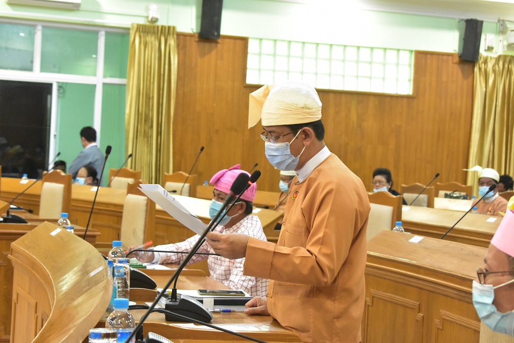 ၂၀၂၀-၂၀၂၁ ဘဏ္ဍာနှစ် မွန်ပြည်နယ်၏ ဒေသန္တရဆိုင်ရာစီမံကိန်းဥပဒေ(မူကြမ်း) တင်သွင်းခြင်းနှင့် မွန်ပြည်နယ်လွှတ်တော် ဥပဒေပြုရေးဆိုင်ရာ ကော်မတီ ဥက္ကဋ္ဌမှသုံးသပ် ချက်အစီရင်ခံစာဖတ်ကြားတင်ပြခြင်း၊ ဥပဒေ(မူကြမ်း)နှင့်စပ်လျဉ်း၍ ဆွေးနွေးလိုသည့် ကိုယ်စား လှယ်များသည် ယနေ့ရုံးချိန်အတွင်း မွန်ပြည်နယ်လွှတ်တော်ရုံး၊ ဝန်ထမ်းအကြီးအမှူးထံတွင် အမည်စာရင်းတင်သွင်းနိုင်ကြောင်းကြေညာခြင်း၊မွန်ပြည်နယ်အစိုးရအဖွဲ့၊စီမံကိန်းနှင့်ဘဏ္ဍာရေး