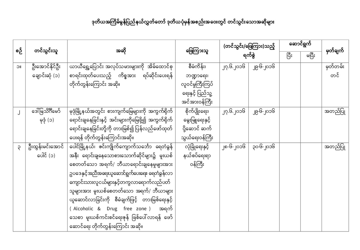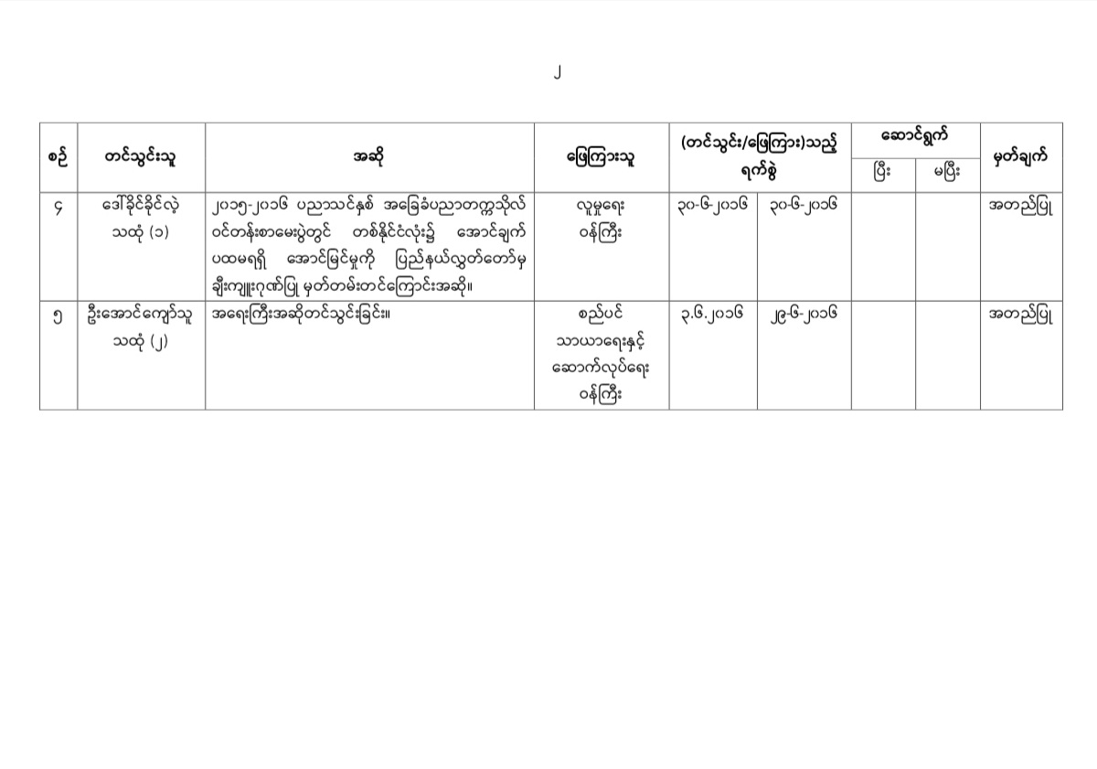 ဒုတိယအကြိမ်မွန်ပြည်နယ်လွှတ်တော် ဒုတိယပုံမှန်အစည်းအဝေးတွင်တင်သွင်းခဲ့သော အဆိုများ