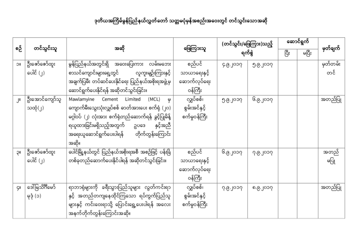 ဒုတိယအကြိမ်မွန်ပြည်နယ်လွှတ်တော် သတ္တမပုံမှန်အစည်းအဝေးတွင်တင်သွင်းခဲ့သော အဆိုများ